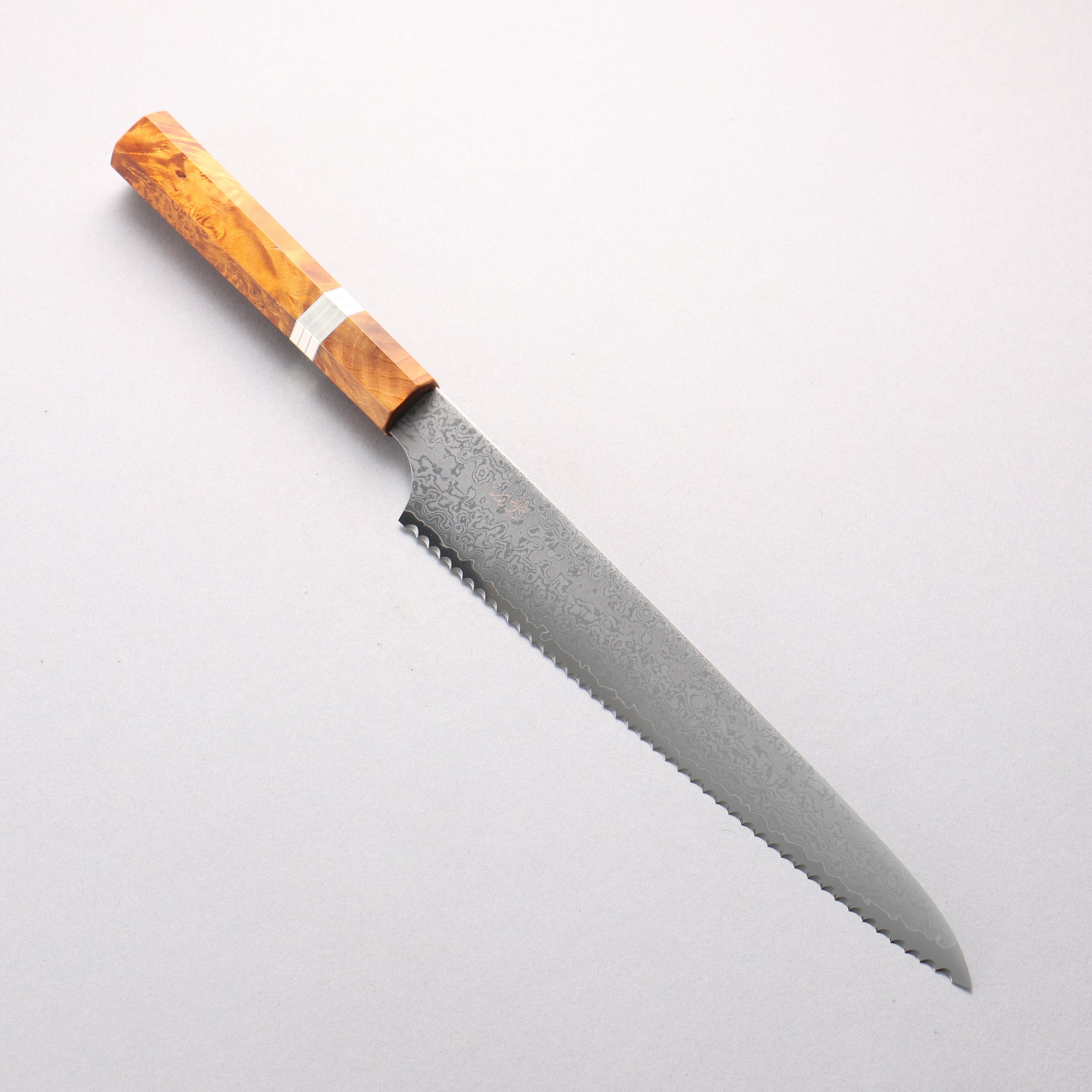 Kei VG10 大馬士革紋 麵包刀 240mm 棕色穩定木材 (銀環) 握把
