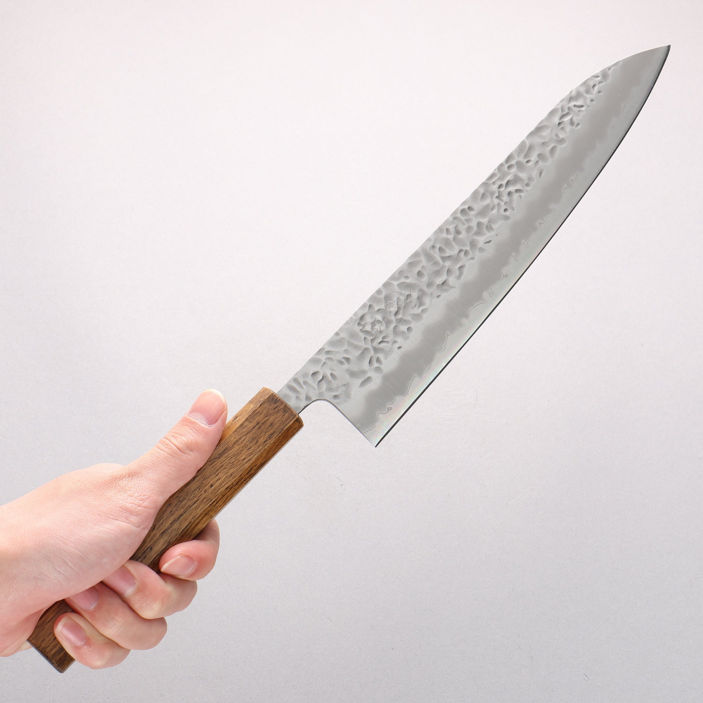 翁流 白鋼一號 鎚目 牛刀 240mm 橡木 握把