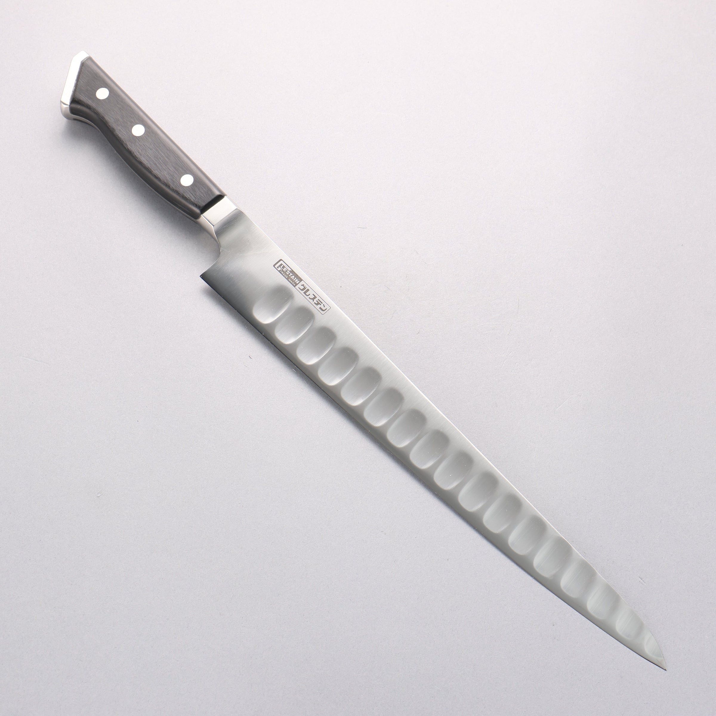 Glestain 刀具是以 ACUTO 440 不鏽鋼鍛造,有絕佳的鋒利度和韌度。而刀刃面的獨特設計,在使用時可減少食材沾黏,提升您用刀的順暢感受。產品規格: