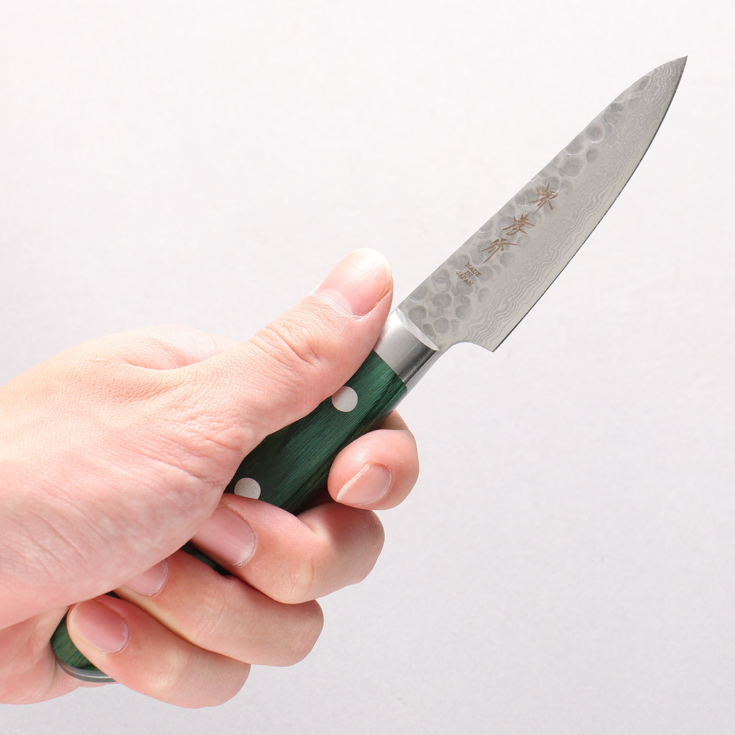 堺 孝行 VG10 17層大馬士革紋 多用途小刀 80mm 合成木(綠色) 握把